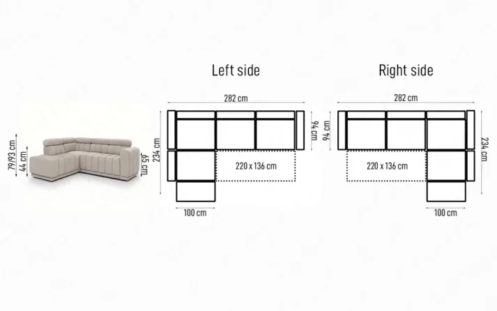 Sofa bed AUSTIN Open is available as a left- or right-hand corner. It can be personalised in a wide variety of colours, textures, and fabrics. We invite you to visit our showroom and experience the full selection of materials to find the perfect fit for your interior.