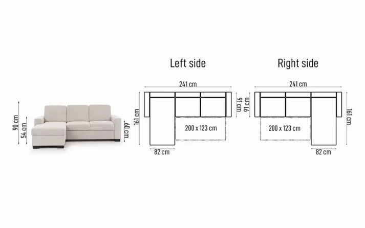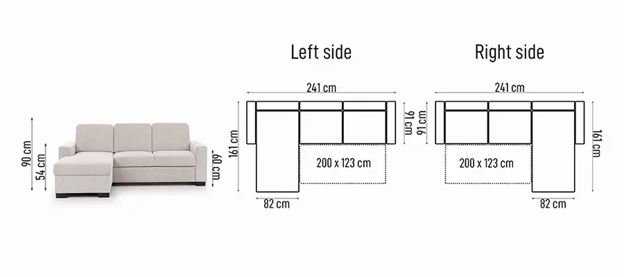 Sofa bed TORONTO Mini is an ideal compact solution that fits comfortably in most apartments without compromising on comfort or functionality. The sofa can be configured as left- or right-side facing to match your room layout. It also offers a practical sleeping area, easily converting into a guest bed when needed, making it a smart choice for multifunctional living spaces. Please note that this model does not include a bedding storage container.